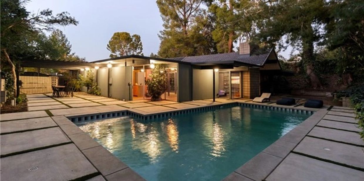 Designed by legendary architect A. Quincy Jones and built by visionary developer Joseph Eichler, this iconic mid-century home showcases the signature indoor-outdoor lifestyle that defines true California modernism centered around Eichler s hallmark central atrium, the architectural heart of the home. Welcome to 17136 Nanette Street, a beautifully reimagined Eichler residence nestled in the heart of iconic Granada Hills. This rare mid-century gem seamlessly blends timeless architectural integrity with thoughtful modern upgrades, offering five bedrooms and three bathrooms designed for effortless living and inspired entertaining. True to Eichler design, walls of glass flood the home with natural light while creating a seamless connection between interior spaces, the private atrium, and the outdoors. Clean lines, open living areas, and curated updates create a harmonious balance of form, function, and style. The backyard is a private sanctuary featuring a sparkling pool framed by lush, mature trees that provide privacy, shade, and a serene, resort-like atmosphere. Whether hosting gatherings or enjoying quiet moments at home, the expansive outdoor space invites year-round enjoyment. Located in one of Granada Hills most desirable neighborhoods, this property offers the perfect blend of architectural significance, comfort, and Southern California lifestyle living. A rare opportunity to own a restored Eichler by A. Quincy Jones this is Granada Hills living at its finest.