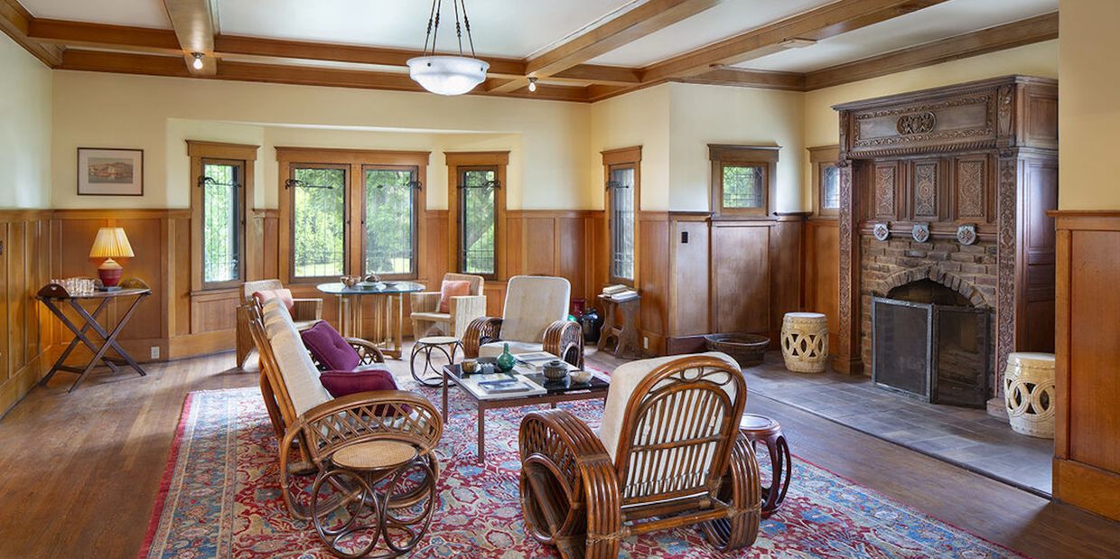 First offering since 1993: Finis E. Yoakum House, 1915. Los Angeles Historic-Cultural Monument No. 287. Built for the founder of what came to be known as the Pisgah Home Historic District in Highland Park (on the National Register of Historic Places), Finis E. Yoakum provided faith healing and social services to the needy around 1900. His loyal followers repaid him by building a large Tudor style property to the south that would be used as his personal residence. In the 107 years since its completion, the Yoakum House is one of the largest landmarks in the neighborhood and miraculously has retained much of its original historic fabric. Formal entry, wainscoting, coffered ceilings, large pocket doors between rooms and two hand carved fireplaces can be found on the first floor.