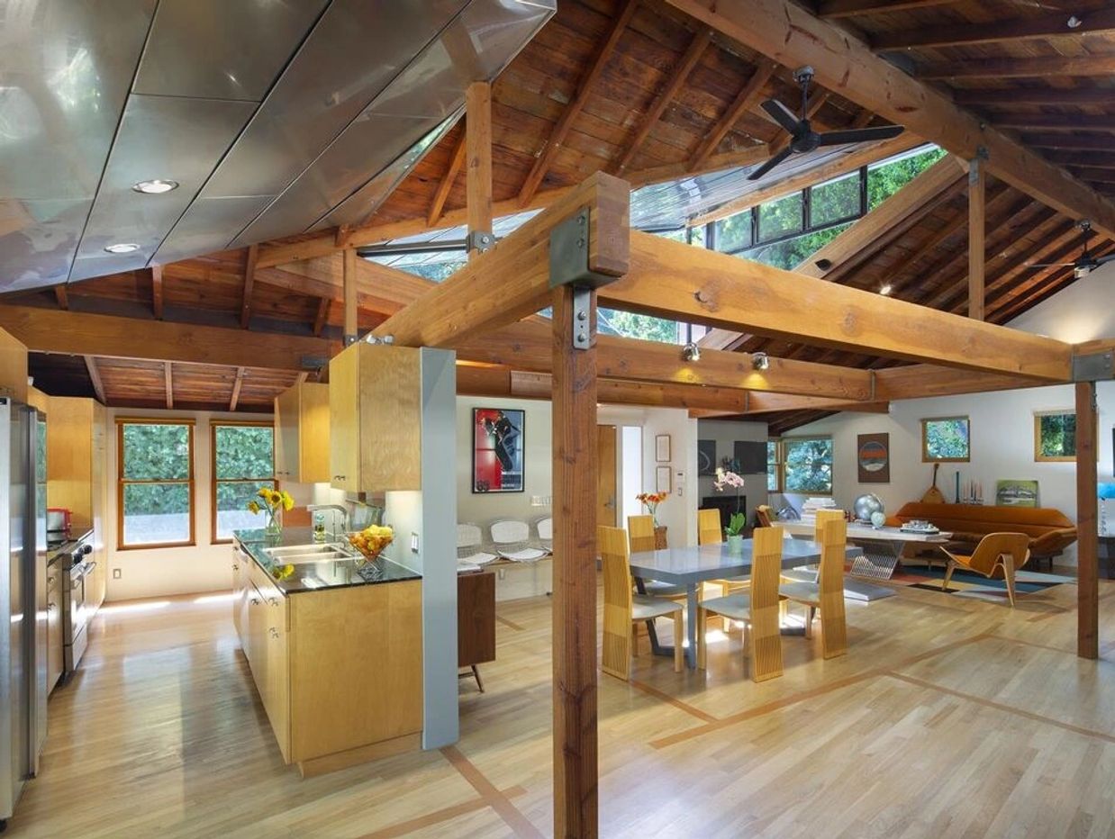 The Mahler / Adams Residence, 1924-1998, William Adams, Architect. The published studio / home of sculptor Anna Mahler, daughter of Austrian composer Gustav Mahler, is a remarkable demonstration of Mies van der Rohe's adage: Less is more. While memorializing them in the new hardwood floor surface in deference to Mahler, architect William Adams daringly removed living room, dining room, kitchen, bedroom walls, and ceilings creating an inspiring new space for modern living. The new open plan features spacious high-ceilinged living / dining space with fireplace. Remodeled kitchen with stainless appliances and a corner banquette. A primary bedroom with en suite bathroom, and walk-in closet with handcrafted Mortise & Tenon cabinetry. The second bedroom can also function as an office and opens directly to the private exterior and into nature. A party-sized sundeck, sheltered by a canopy of shade trees, adorns the hillside and affords wide views of the surrounding canyon making it the perfect place to unwind or host friends. Carport for two cars with EV charging, as well as a driveway and parking pad in the front yard offers parking for 6 cars total. Situated in sylvan Beverly Glen with the prestigious Bel Air zip code, The Mahler / Adams Residence offers an artful blend of rich, bohemian history and warm contemporary architectural significance.