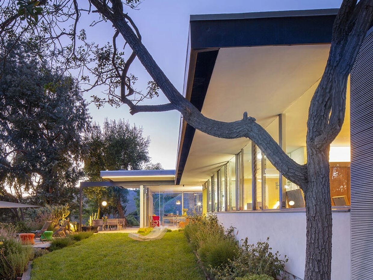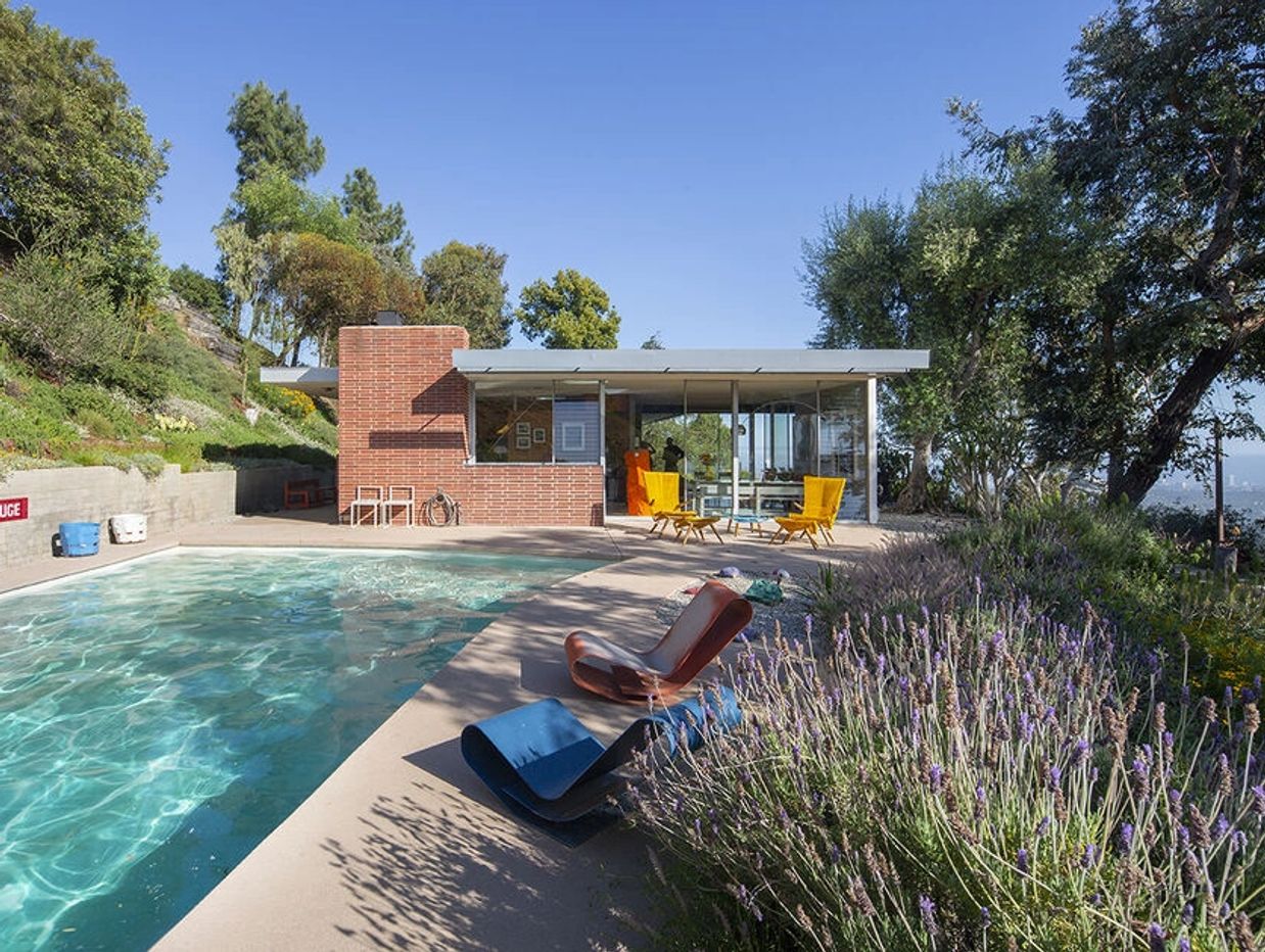 The Sale House, 1960. Richard Neutra, Architect. Brentwood's exclusive Tigertail Road winds its way up the mountain. At the tip of Tigertail is the Sale House. Here, the profound assets of the land are magnified by Neutra's careful siting and glass house program. Originally designed for an artist and her husband, Neutra added skylights and lighting to enhance the owner's art work. 65 years after its completion, the residence is once again home to an art and furniture collection vividly expressing its owner's vision. A recent restoration of the residence and pool has maintained Neutra's plan, built-in furniture, cabinetry, bathroom tile, and the original owner's mosaics. New landscaping was designed by Ivette Soler Gardens.
